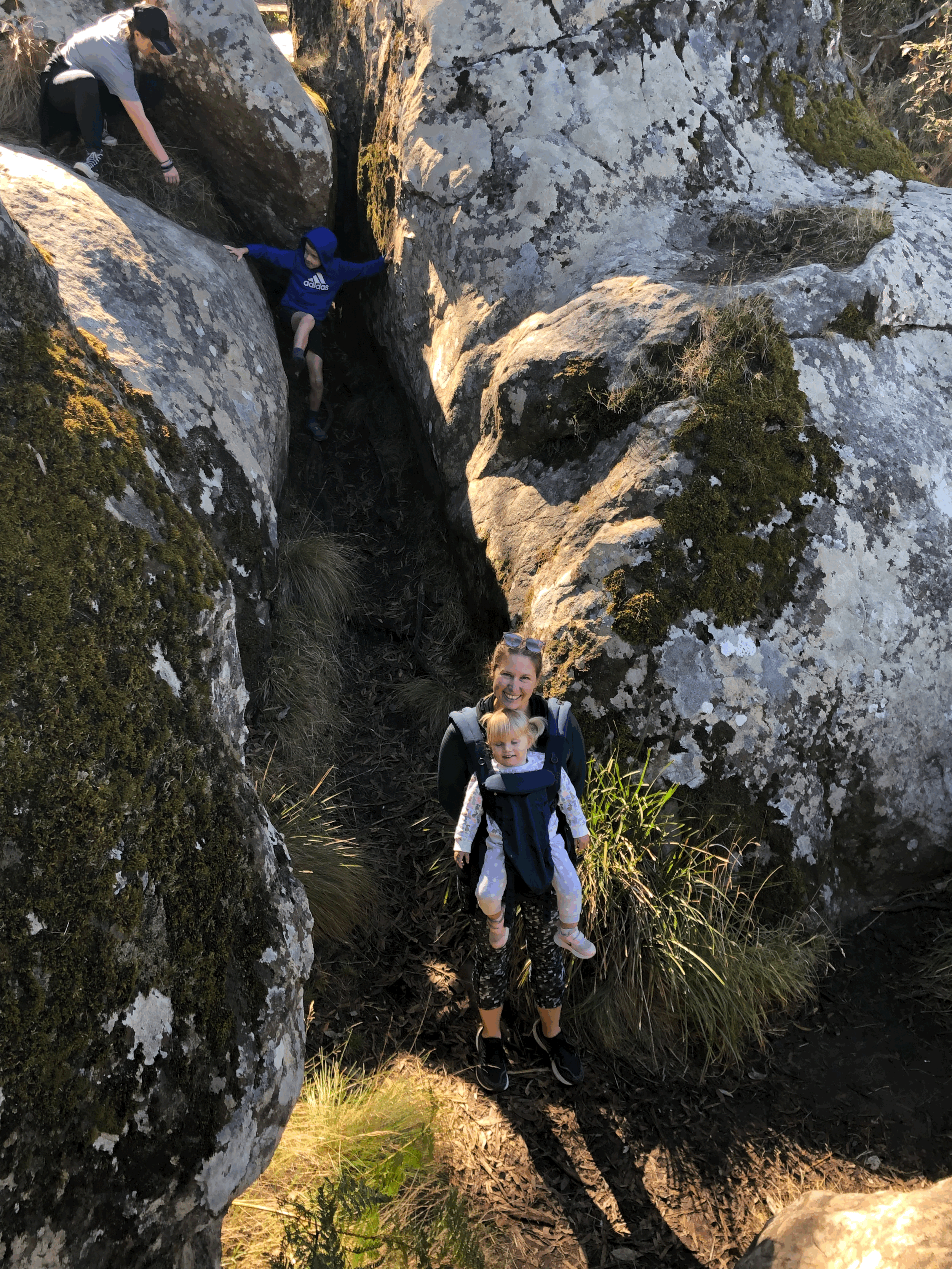 Hanging Rock was formed by lava erupted from the volcano and carved by wind and rain into tall columns, caves, and jagged cliffs.